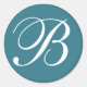 Pnha o toque final em seus convites do casamento, em cartões salve a data ou na outra correspondência com estas selos do envelope ou etiquetas feitas sob encomenda do favor do casamento. Estes convite do casamento selam a característica uma inicial branca do monograma em um fundo azul de turquesa ou de aqua com uma beira mais escura do azul da cerceta. Você pode facilmente personalizar com sua própria inicial na página da ordem do produto para personalizá-los.