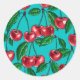 Adesivo Redondo Cerejas vermelhas em turquesa