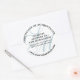 Certificado redondo elegante de autocolantes com texto preto e seu monograma em azul claro e cinza. Certificado personalizado de autocolantes de autenticidade com seu nome, monograma e site. Um monograma elegante de autocolantes de autenticidade para ele com as iniciais do artista em azul claro abaixo do texto.
