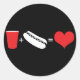 Adesivo Redondo cerveja + cachorros-quentes = amor