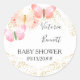 Adesivo de favor de borboleta bonita, editável para qualquer ocasião. O design tem borboletas femininas em rosa coral creme aquarela com confetes dourados. A redação é totalmente editável e escrita em letra cursiva elegante com tipografia serifada elegante. Por favor, explore minha loja para encontrar convites e acessórios correspondentes na coleção Céus de Borboleta.