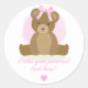Adesivo Redondo Chá de Arco de cabelo rosa e bonito, Urso Vermelho