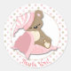 Este obrigado que você cola apresenta um adorável ursinho marrom e adorável, com um boné riscado branco e rosa, e cobertores cor-de-rosa. A imagem é emoldurada em uma borda pokadot rosa e marrom. Seu texto personalizado está em rosa mais escuro na parte inferior. Certifique-se de ver os produtos de chá de fraldas correspondentes, incluindo convites, em nossa loja.