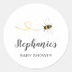 Este Adesivo de Chá de Bebê Abelha apresenta uma abelha em aquarela. O texto é personalizável. Aquarela Original © Michele Davies.
