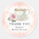 Termine o seu chá de panela com um toque sincero usando este elegante adesivo de “Obrigado”. Com uma delicada xícara de chá vintage, rosa desbotada e trabalho em pergaminho dourado romântico, este rótulo redondo rosa suave combina perfeitamente com o tema de festa de chá Love is Brewing. Personalizado com o nome da noiva, é ideal para selar sacos de lembranças, envelopes ou caixas de presente com charme e graça.