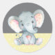 Adesivo Redondo Clássico Chá de Bebê de Elefante Amarelo e Cinza