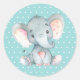 Adesivo Redondo Clássico Chá de Bebê de Elefante Aqua