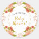 Adesivo Redondo Chá de Bebê de Flores em Aquarela Dourado Pêssego