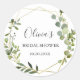 Adesivo Redondo Clássico Chá de Bebê de Noiva Floral com Moldura Geométrica de Eucalipto Moderna. Para personalização adicional, clique no link "personalizar ainda mais" e use nossa ferramenta para editar este modelo. Se precisar de ajuda, por favor entre em contato.