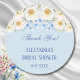 Adesivo Redondo Chá de Bebê de Noiva Jardim Floral Azul e Branco O