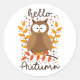 Adesivos aconchegantes para chá de bebê de outono com coruja da floresta em cores de outono. Adesivo redondo de papelaria clássica e para artesãos. Visite minha loja para toda a coleção de designs de impressão de inverno e outono.