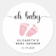 Um adesivo bonito para o seu chá de bebê, favores e correspondência com "oh baby" em um roteiro de na moda com baloiços e uma aquarela rosa de pés de bebê. Personalize com seu nome e data de chá.