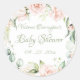 Adesivo Redondo Chá de Bebê Floral em Verde Sálvia Elegante