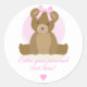 Adesivo Redondo Chá de Bebê Menina Arco de Cabelo Rosa Fofo Ursinh