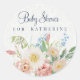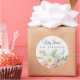 Adesivo Redondo Chá de Bebê Menina Rosa Bege Flora Folhagem Verde