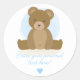 Adesivo Redondo Chá de Bebê Menino Coração Azul Urso Teddy Fofo