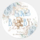 Adesivo Redondo Chá de Bebê Menino Urso Teddy Boho Azul Floral Pam