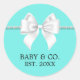 Adesivo Redondo Clássico Tema Tiffany Azul Água Elegante para Chá de Bebê. Mime a futura mamãe com um chá de bebê tema Tiffany! Este adesivo pode ser usado em papelaria, sacolas de lembrancinhas, presentes e prêmios para criar um chá de bebê chique, moderno e retrô para a mamãe que está esperando e que tem tudo. A combinação de azul água turquesa com pérolas e um laço branco combina com nossos convites de chá de bebê Tema Tiffany, decoração para festa, artigos para mesa e muito mais!