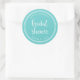 Adesivo elegante e redondo para chá de noiva náutico com uma borda de listras brancas e a expressão "chal de noiva" em uma fonte trendy de pincel sobre um fundo turquesa. Use-o para selar seus envelopes. Confira outros itens de casamento aqui https://www.zazzle.com/rosewoodandcitrus/gifts?cg=196540141241316965&rf=238364477188679314