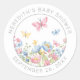 Este adesivo encantador é perfeito para um chá de bebê A Little Wildflower Is On The Way ou Baby in Bloom. No centro, um arranjo delicado de flores silvestres em aquarela e borboletas a voar cria um toque caprichoso e elegante. O design floral apresenta tons suaves de rosa, azul, amarelo e verde, adicionando um toque fresco e alegre.