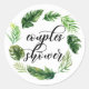 Casais personalizáveis, chá adesivo com aquarela e padrão ou folhas de palma, bananeiras e outras folhas tropicais. Este adesivo é perfeito para o verão e chás de temas tropicais. Os convites correspondentes e outros itens estão disponíveis.