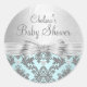 Adesivo Redondo Chá de fraldas Azul e Silver Damask