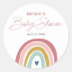 O adesivo do Chá de fraldas do Rainbow Boho Pink Blue apresenta uma adorável dupla de arco-íris em tons de rosa, pincel, mostarda, aqua e marinho, juntamente com a caligrafia moderna.