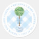 Adesivo Redondo Chá de fraldas Azul Tópico Clássico Boxwood Obriga