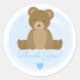 Adesivo Redondo Chá de fraldas Azul Urso Vermelho Bonito Obrigado