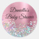 Adesivo Redondo Chá de fraldas Brilhante de Folha Rosa Holo