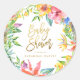 Adesivo Redondo Chá de fraldas | Caligrafia Tropical Dourada