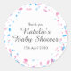 CONFETTI DO chá de fraldas, OBRIGADO POR FAVORECER VINHOS. Este obrigado de chá de fraldas bonito que você prefere que o adesivo apresenta um confete de bebê rosa e azul. Personalize com seu próprio nome, data e mensagem do bebê. Projetado por Piglet © Pura em www.zazzle.com/purepiglet*.