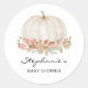 Este adesivo de chá de fraldas de queda fofo apresenta uma abóbora branca e uma folhagem pastel macia. Perfeito para um chá de fraldas neutro em termos de gênero. Facilmente personalizável. Original Watercolor © Michele Davies.