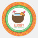 Adesivo Redondo Chá de fraldas de Aniversário do Havaí Luau Coconu