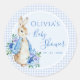 Adesivo Redondo Chá de fraldas de Aquarela de Coelho Azul Gingham