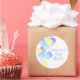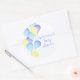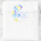 Balões azuis, amarelos e roxos coloridos para um chá de fraldas "pronto para pop". Personalize o texto como preferido.