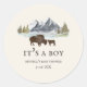 Ilustração de aquarela de bébé e mamãe búfalo com cena de montanha.