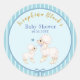 Bah bah baby! Este doce design apresenta uma borda azul de arco de fita e um lindo carneiro com suas ovelhas mamães vestindo um arco azul correspondente. Este adesivo redondo é perfeito para o seu chá de fraldas temático de cordeiro para um bebê. Este adesivo redondo de chá de fraldas é personalizável e permite adicionar seu próprio texto. As listras azuis suaves e o esquema de cores douradas são excelentes para chás de fraldas primavera.
