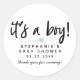 Um adesivo de etiqueta favorito simples e elegante para a sua festa de chá de fraldas. O texto diz "é um menino!" numa letra moderna. Você pode adicionar o nome da futura mãe e a data do evento. Diz "obrigado por vir" no fundo. Há um coração azul bonito no meio. Design para os minimalistas!