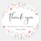 Um adesivo de chá de fraldas neutro em relação ao gênero para seus favoritos para festas e cartas de agradecimento que apresentam aquarelas de flores silvestres delicadas e "obrigado você" em um roteiro de na moda. Personalize com o nome da data de mamãe e chá.