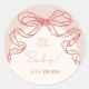 Um adesivo branco desenhado à mão e gravado com chá de fraldas laranja, seguindo a última tendência em temas e suprimentos de chá de fraldas. Este design de estilo caprichoso e peculiar apresenta um arco retrô e uma fonte manuscrita. Perfeito Oh Baby convidado para chás de fraldas modernos modernos modernos modernos para garotos e meninas. As cores rústicas fazem dele um fornecimento perfeito para chás de fraldas neutros em termos de gênero.