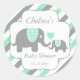 Adesivo Redondo Chá de fraldas de elefantes brancos, verdes e Cinz
