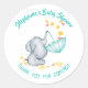 Adesivo Redondo Chá de fraldas de elefantes e estrelas Obrigado
