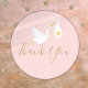 Apresentando um carregando de cegonha giro uma entrega muito especial de estrelas douradas, com um belo obrigado de guião, em um fundo cor-de-rosa bebê. Este chá de fraldas, adesivo de salsicha é perfeito para adesivos favoritos e selos de envelopes. Projetado por Thisnotme©