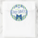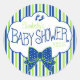 Verde limão moderno, fundo listrado azul e branco, com arco azul bonito e pegadas de bebê azul-chá de fraldas. Personalizado com seu nome e data de chá! O adesivo de tamanho pequeno é perfeito para selagens de envelopes ou para uma etiqueta circular de metal e é anexado a um saco de biscoitos! O tamanho maior é o excelente para pratos de papel, xícaras e balões e presentes de favoritos para convidados chás de fraldas. Adicione produtos correspondentes como um guia de chá de fraldas. Este "Chá de fraldas Azul e Verde" está disponível em outras cores. Visite minha loja "A Princesa Húngara" em www.zazzle.com/hungaricanprincess*. Olhe na minha categoria de departamento "Oh Baby". Parabéns!
