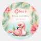 Adesivo Redondo Chá de fraldas de Flamingo, Rosa Tropical de Verão