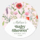 Você está procurando um tema de chá de fraldas exclusivo? Veja este adesivo redondo clássico de Chá de fraldas de flor selvagem rosa. Tem belas flores de aquarela em fundo rosa. Você pode personalizar este adesivo muito facilmente, com o nome da futura mamãe.