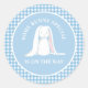 Adesivo Redondo Chá de fraldas de gingham azul Bunny