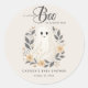 O pequeno Chá de fraldas de Boo Boho Ghost Halloween, Classic Round Sticker, apresenta um fantasma adoravelmente assustador, rodeado por botânicos boêmicos.