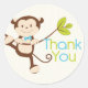 O obrigado do nosso macaco-macaco chá de fraldas que você cola é o toque perfeito para o seu chá de fraldas obrigado. O Sticker mostra o macaquinho mais bonito balançando num galho em fundo marrom. Visite-nos no nosso compro para fazer convites para chuveiros de bebês, obrigado, cartões de nota e adesivos. ©Petit Tatti